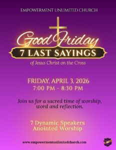 Join the Empowerment Unlimited Church family and connect with others who share your faith values and grow spiritually, personally and professionally.